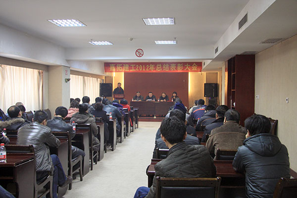 2012年歲尾,嘉拓全體員工在銀夢酒店多功能廳召開了“遼陽嘉拓建筑工程有限公司第一屆年終總結表彰會”。會議中,公司領導分別對過去一年的工作進行深刻的總結,肯定我們所取得的成績的同時也指出了我們在工作中所存在的缺陷和不足。此外,會議上還通過集體投票的形式評選出一批優秀的班組及先進個人并予以表彰和頒獎,公司希望以此能夠激勵所有員工在今后的工作中積極進取,努力工作,充分的展現員工最優秀的一面。 會議整體的氛圍非;钴S,大家都能積極踴躍的進行總結并彼此交流自己在工作當中心得體會,本次總結表彰大會取得了圓滿的成功,它標志著我們嘉拓公司破除了以往的舊觀念,確立了新的目標,向美好的未來邁出了暫新的一步。